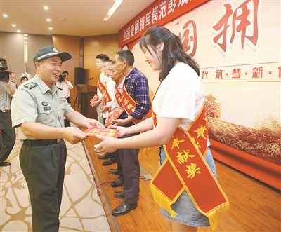 儀式現場,閃光燈不停閃爍,照相機和手機鏡頭,紛紛對準領獎的軍屬代表!斑@一刻,我感到無比光榮!”走下領獎臺,駐山東某部軍官、三等功榮立者王冀的母親鄭萍激動地說。