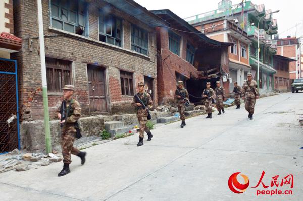 2015年4月尼泊爾大地震,抗震救災的官兵快速奔向塌方地段。羅凱攝