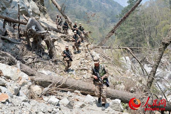 跋山涉水,樟木邊防連官兵巡邏到點到位。 羅凱攝