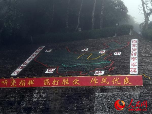 踏入樟木連隊的營區,一個用玻璃瓶壘成的中國地圖上“祖國在我心中”的字樣映入眼簾。 人民網記者閆嘉琪攝