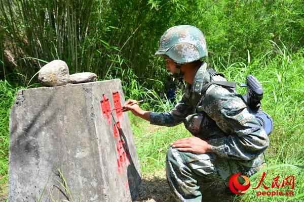 邊防戰士巴桑描紅47號界碑。人民網柴濟東攝