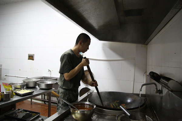 清晨4點多,天還沒亮,炊事班的戰士們已經早早起床為官兵們準備早餐。
