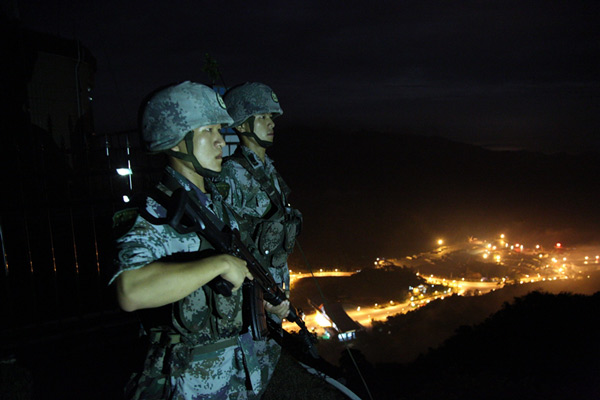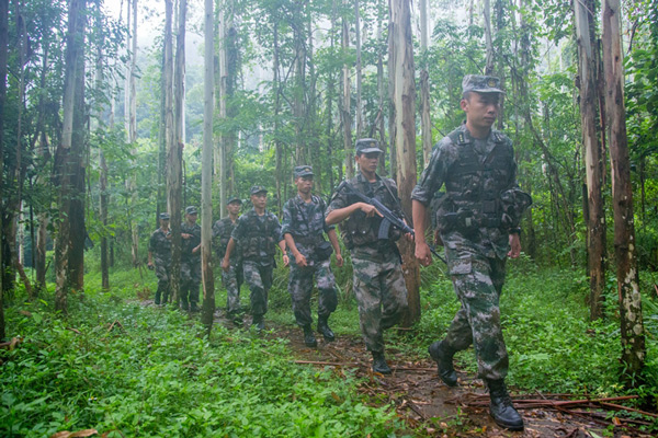 26歲的十連六班副班長尹江說:“雖然金雞山巡邏路山高路陡、雜草叢生,‘晴天一身土,雨天一身泥’,但每當走上巡邏執勤的崗位時,我都會感到身上肩負著神圣的使命,因為我站立的地方是中國!”