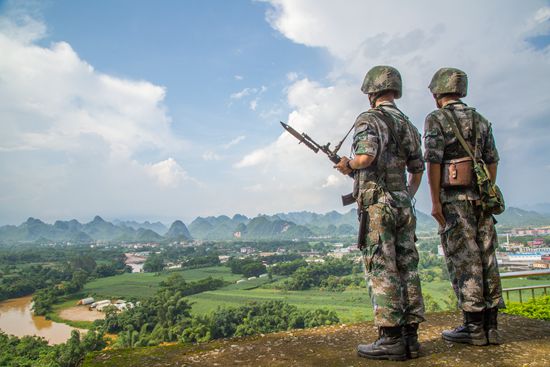 人民網北京7月21日電 近日,由人民網、陸軍政治工作部宣傳局聯合開展的“祖國在我心中”界碑描紅主題活動第五站走進廣西邊防部隊,跟隨南部戰區陸軍某旅邊防部隊一起巡邏,并對中越邊境線的15座界碑進行描紅。人民網系列報道推出后,連日來在一線邊防官兵中引發了強烈反響,眾多邊防官兵紛紛留言熱議。