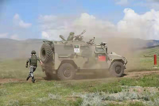 帶隊參加該項賽事的陸軍第77集團軍某旅副旅長劉大鵬告訴記者,火力賽在“軍事拉力”項目中實戰氛圍最濃。根據比賽規則,參賽隊員每兩人一組,使用俄方提供的“虎”式突擊車參賽。射手要在車輛行進間,捕捉300米至400米外的3組10個隱顯目標,在每組目標僅顯示10秒的情況下,通過車載機槍對半山腰上的目標進行仰角射擊。