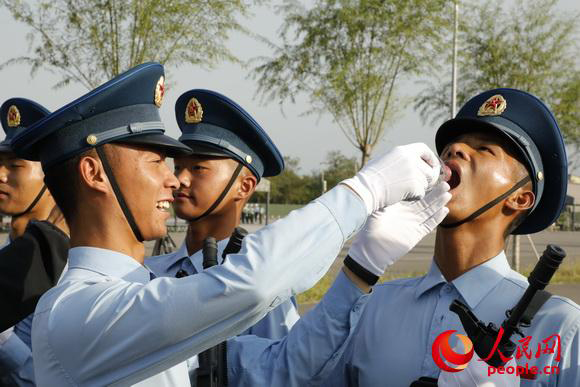 程強為戰友補水(王寶廷 攝)