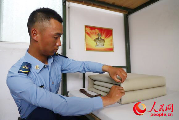 程強整理黃繼光床鋪(王寶廷 攝)