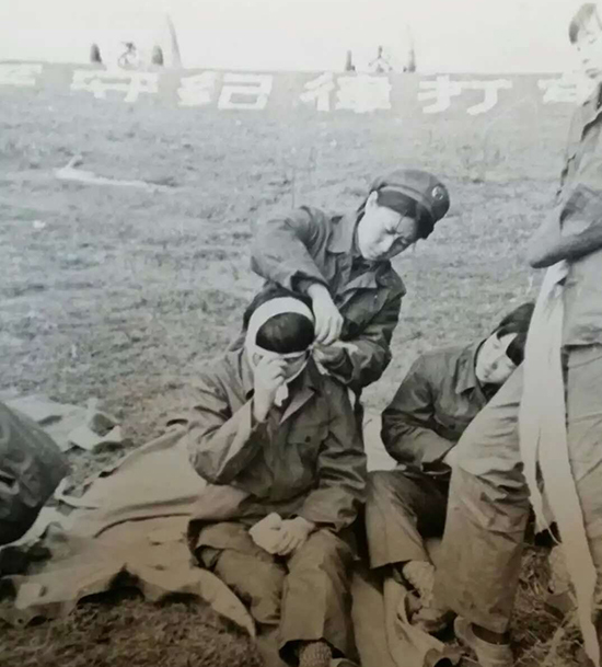 浦秀娟為受傷戰友包扎傷口