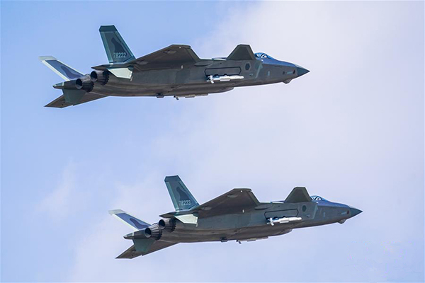 10月19日,在慶祝人民空軍成立70周年航空開放活動上,空軍殲-20戰機進行掛彈飛行展示。萬全 攝