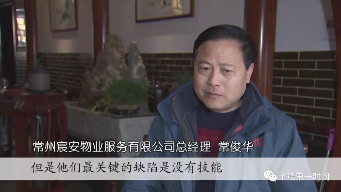 常州宸安物業服務有限公司總經理?∪A說:“2016年的時候,發現我大批的戰友退伍回來以后都失業,到處找零工,也沒有穩定的工作。我就開始想了,弄一個企業,把這幫戰友聚集在一起,后來2018年就創辦了物業公司!