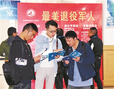 12月15日,在云南省人才市場舉辦的退役軍人專場招聘會上,退役士兵學習了解模范退役軍人事跡。李兵 攝