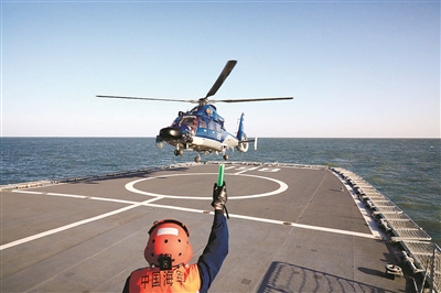 冬日,渤海灣畔某海域白浪翻飛。伴隨著巨大的轟鳴聲,海軍航空大學飛行學員盧華鵬駕駛某型直升機不斷調整飛行高度和角度,穩穩降落在“長興島”號軍艦上。這是海軍艦載直升機飛行學員在院校期間完成的首次晝間著艦課目訓練。這批學員經過系統的“艦基”課目訓練,畢業后將很快成為部隊戰斗員。