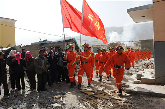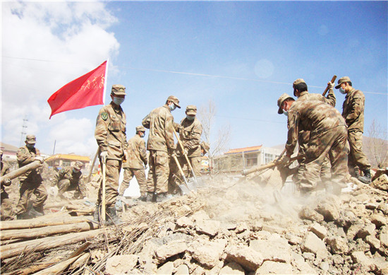 玉樹地震10周年之際,官兵在地震遺址默哀