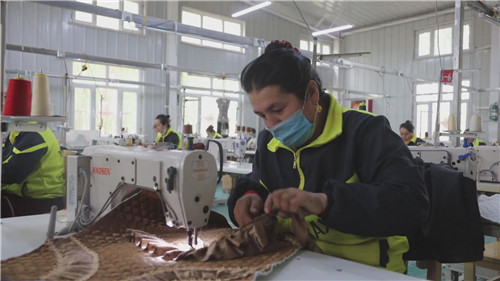 正在工作的是艾日克博依村村民迪麗拜爾·阿里木,“我是個家庭婦女,沒有收入來源,家里面還有兩個老人,‘衛星工廠’離家近,在家門口就可以上班,我現在每個月工資1200元到2000元,有了收入,生活水平也提高了,特別高興!钡消惏轄枴ぐ⒗锬菊f道。