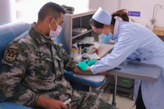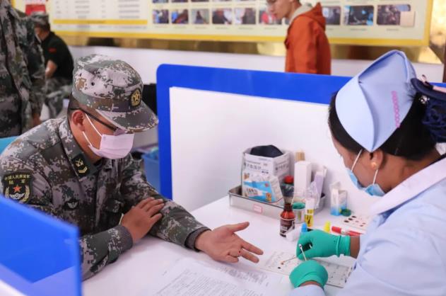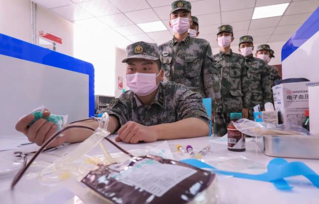 人民有所需,軍人有所答。官兵們嚴格遵守獻血秩序,有條不紊地填寫血液信息采集表,采血化驗,獻血……獻血過程中一股股鮮血流入貯血袋,詮釋軍人的為民情懷。