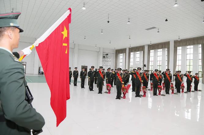 “向軍旗敬禮!”隨著口令的下達,該旅全體機關干部目光凝注,舉起右手,向軍旗敬禮。
