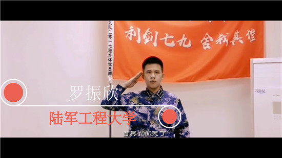 我,羅振欣,當兵1000天了。曾經我是一名光榮的海防戰士,如今是陸工大莘莘學子中的一員。人生最美,美在軍營。我有幸參與到軍運會的保障任務,積極備戰技能比武和聯考聯訓,不斷突破自己,超越自我。堅信“厚德善工、精武強軍”是我軍旅奮斗的動力和追求。