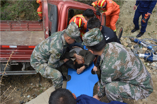 中午12時許,當地消防隊從50公里外匆匆趕到,附近的鄉鎮民警和衛生員也聞訊趕來,與該旅救援官兵聯合行動,使用液壓鉗等專業工具將車門和方向盤切斷,成功將被困將近7個小時的貨車司機救出,軍醫同鄉鎮衛生員立即為何毅進行檢查和包扎。隨后,該旅官兵同消防隊員一起將傷者送往當地醫院進行救治。
