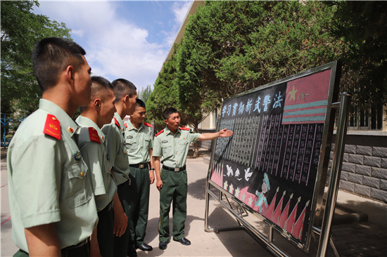 “新修訂的《人民武裝警察法》會議通過了,從2020年6月21日起施行!薄笆裁?組織指揮進行了完善?”“銜級制度開始實行了!”近日,一個個重磅消息在官兵中間炸開了鍋,武警甘肅總隊金昌支隊結合黨委中心組二季度第二階段理論學習,把《人民武裝警察法》納入學習范圍,進行全面系統學習。