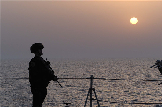 “身在亞丁灣,這里不僅有美麗的晨曦晚霞,還有顛簸的波峰浪谷,更有護送商船的光榮使命!碧貞痍爢T唐家威緊握鋼槍,佇立在甲板上執勤警戒。他說,長時間沒有靠岸補給休整,切身體會了遠航的艱辛,也漸漸讀懂了遠航的意義。