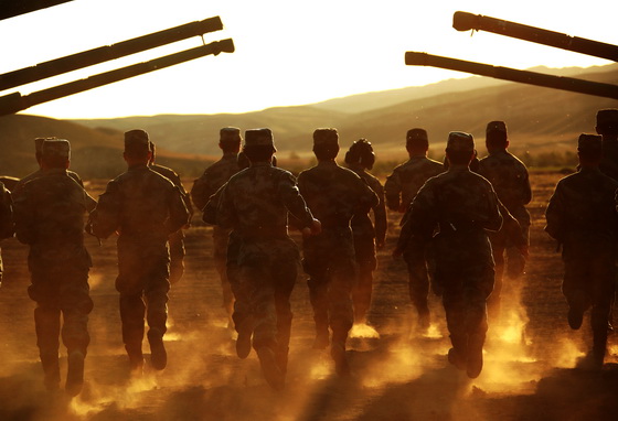 馬和帕麗帶領官兵奔向站位。(攝影:袁凱)