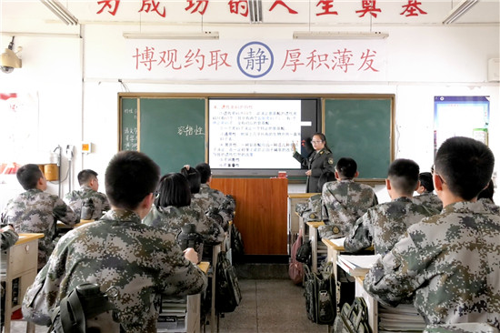 國防特色班學員上課中。