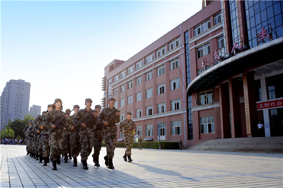 夏日的校園郁郁蔥蔥,佇立在道路兩旁的仁人志士,無一不在激勵著青年學子為中華崛起而發奮讀書。如今,在山西省榆次二中的校園中又多了一支學生兵。嚴格的紀律和優良的作風,成為了他們全新的精神風尚。從宿舍的內務整理到日常生活的行為規范,從嚴守紀律的自覺行為到立志報國的學習熱情,昔日的懶散、柔弱不見了蹤影,取而代之的是自律、堅強。國防特色班的莘莘學子正在以一名軍人的標準嚴格要求自己,前所未有的精神狀態洋溢在每個學員的眼神中。