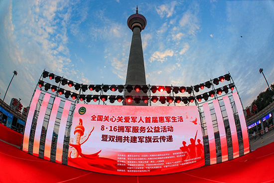 8月15日晚,中央電視臺文化廣場燈火璀璨、旌旗招展。8·16擁軍服務公益活動暨雙擁共建軍旗云傳遞活動在激揚的軍歌和莊嚴的儀仗兵迎軍旗儀式中拉開序幕。據悉,活動由國家相關部委和軍隊指導支持,中國國防交通協會、中國生產力促進中心、中國汽車改裝協會等15個行業協會友情協助舉辦,百余家央(國)企參與。