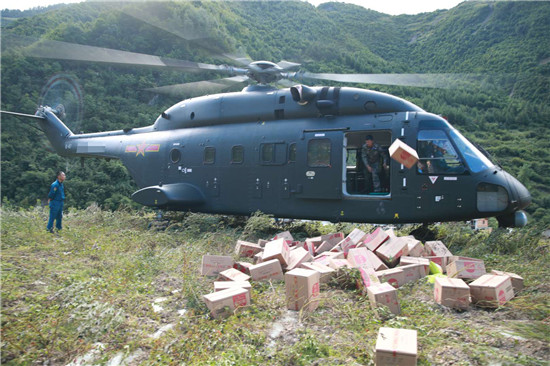 11時37分,完成運送任務的3架直升機返航。官兵來不及休息,利用物資裝載間隙快速用餐。40分鐘后,直升機再次升空,展開新一輪救援行動。