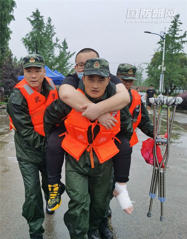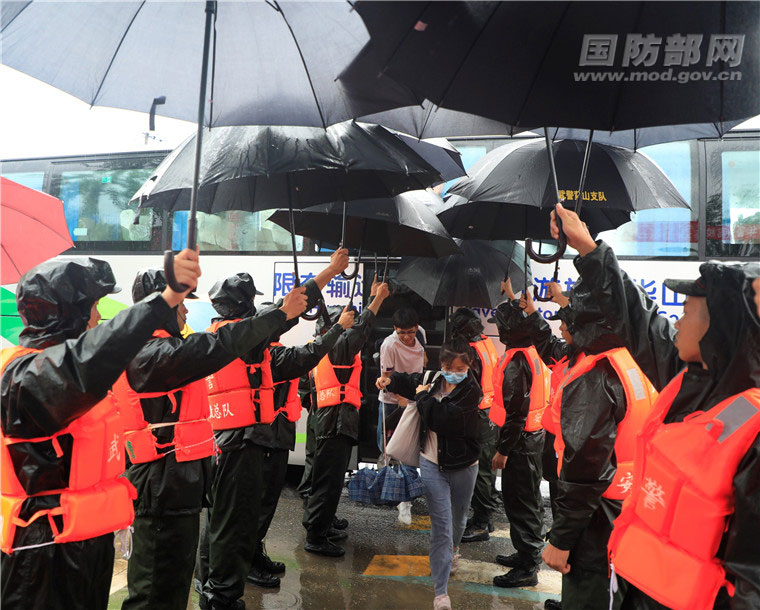 在此,我還想和大家分享一個小故事。那是上個月在安徽歙縣,孩子們的高考因暴雨推遲一天,剛剛執行完堤壩搶險任務的官兵不顧疲勞,立即投入到高考保障工作中。他們用雨傘為考生撐出一條30多米的“雨中長廊”,設立臨時醫療服務站救治生病考生。有一名叫方成的考生因腳踝骨折無法自行到考場參加考試,官兵們硬是輪流接力背著他跑了1.3公里,準時進入考場。歙縣2000多名考生無一因災缺考。