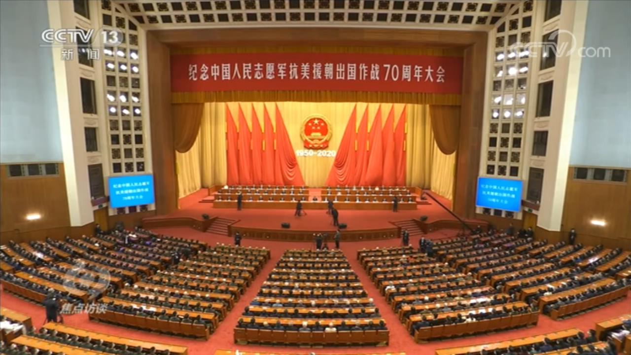 央視網消息(焦點訪談):70年前,面對武裝到牙齒的強敵,由中華民族優秀兒女組成的中國人民志愿軍,雄赳赳、氣昂昂,跨過鴨綠江,開始了兩年零9個月艱苦卓絕的浴血奮戰。70年來,我們始終沒有忘記老一輩革命家為維護國際正義、捍衛世界和平、保衛新生共和國所建立的不朽功勛,始終沒有忘記譜寫了氣壯山河英雄贊歌的中國人民志愿軍將士以及所有為這場戰爭勝利作出貢獻的人們,始終沒有忘記在戰爭中英勇犧牲的烈士們。23日上午,紀念中國人民志愿軍抗美援朝出國作戰70周年大會在人民大會堂隆重舉行,中共中央總書記、國家主席、中央軍委主席習近平在會上發表重要講話。