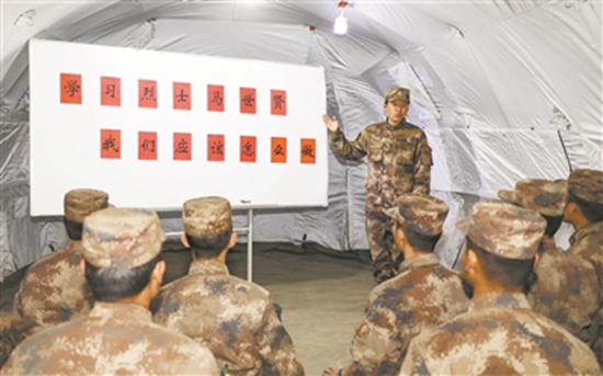 “70年前,和志愿軍烈士馬世賢一同走上抗美援朝戰場的英雄們,在裝備差距極為懸殊,條件極為艱苦的背景下,英勇作戰奮勇殺敵。新時代的我們,不僅要傳承先烈英勇的戰斗意志,更要在沙場上書寫屬于我們的時代答卷!边B日來,第79集團軍某旅在演練間隙,組織官兵圍繞“如何傳承英烈戰斗精神,爭當英雄傳人”進行討論辨析。該旅還指派專人與烈士馬世賢親屬、某邊防旅及孟津縣人武部建立聯系,充分挖掘烈士馬世賢的英勇事跡,并組織巡回宣講,激發官兵練兵熱情。