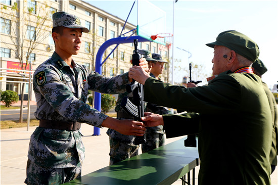 抗美援朝老兵將象征“責任”的鋼槍傳遞給年輕官兵。