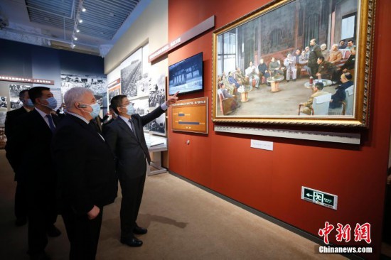 11月3日,俄羅斯駐華大使安德烈·杰尼索夫在中國外交部副部長樂玉成及中俄兩國多位相關人員的陪同下,前往位于北京的中國人民革命軍事博物館參觀“銘記偉大勝利 捍衛和平正義——紀念中國人民志愿軍抗美援朝出國作戰70周年主題展覽”。圖為安德烈·杰尼索夫觀看油畫《決策出兵》。蔣啟明 攝