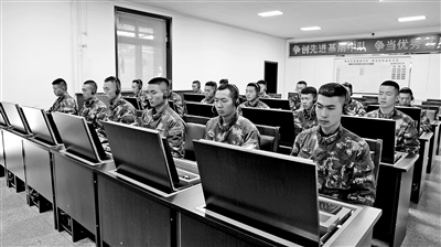 武警某部官兵利用軍事職業教育平臺開展線上學習。