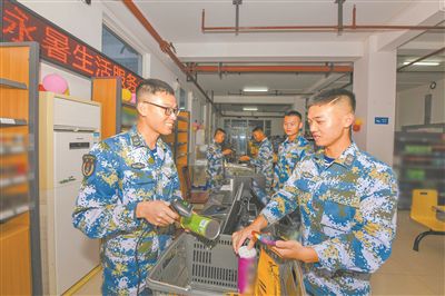 “要是能喝上一瓶冰鎮飲料,那該多酣暢……”訓練歸來,南沙永暑礁守備部隊下士林錦堂抹了一把臉上的汗水。