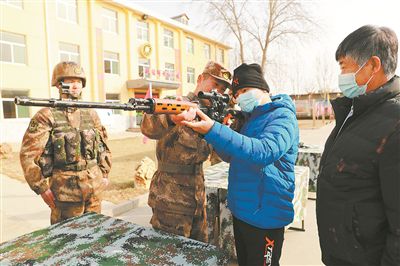 凱凱(右二)正在體驗射擊。照片由作者提供
