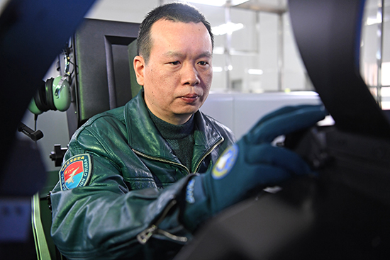 恢復技術、準備復飛時,王建東進行模擬機訓練。