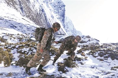 去邊關巡邏,一直是楊曉晨的心愿。李昭琿所在連隊的巡邏點是海拔5300多米的某山口,一路暗冰遍布、到處滾石,積雪最深處可達1米,近70度的陡崖,連牦牛都上不去。聽說楊曉晨想去巡邏,李昭琿一口拒絕,巡邏山高坡陡,危險重重,他不想讓妻子冒這個險!拔乙彩且幻咴瓚鹗,我絕不拖大家的后腿!睏顣猿繎B度堅決,李昭琿才勉強答應。