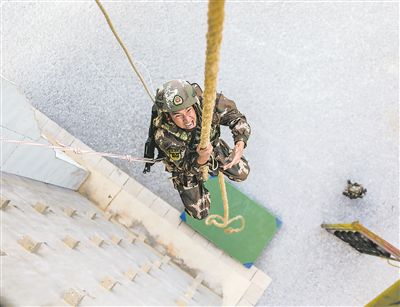 3月3日,武警第二機動總隊某支隊組織開展戰術、攀登、索降等課目訓練,錘煉偵察兵敢打必勝的過硬本領和英勇頑強的戰斗精神。 趙雨杰攝