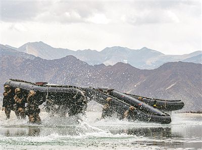 月上旬,陸軍某旅開展水上課目訓練,錘煉官兵立體突擊能力。王述東 攝