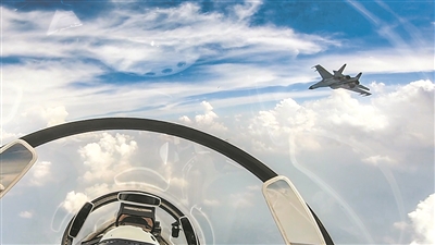 發現目標!僚機飛行員石強立即向長機飛行員李文超通報“敵”機位置,并進行支援性機動,試圖從側翼發起攻擊。長機隨即與“敵”機纏斗,為僚機進攻創造有利條件。一場復雜環境下的云端對決,在萬米高空激烈展開。數個回合后,石強抓住稍縱即逝的“攻擊窗口”,果斷向“敵”機發出致命一擊。