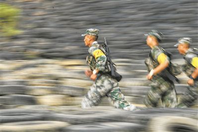 圖①:5公里武裝越野你追我趕。