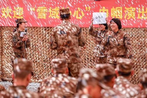 在海拔5000多米雪域高原駐訓的新疆軍區某合成團,充分發揮“雪域沁心”文藝演出隊作用,定期為分布在不同駐訓場的官兵送演出送歡樂,活躍了官兵文化生活,促進了訓練提升。