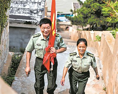 王繼才夫妻倆每天做的第一件事就是在島上升起五星紅旗。