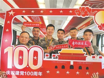 圖為湖南省懷化軍分區官兵在紅色專列合影。李娟芳攝