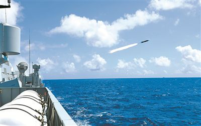 緊隨其后,各艦副炮系統對“敵”目標實施補充打擊。海上“敵”情剛剛消除,空中威脅又不期而至。判別來襲目標后,各艦立即發射干擾彈,同時進行戰術機動,成功規避來襲導彈。