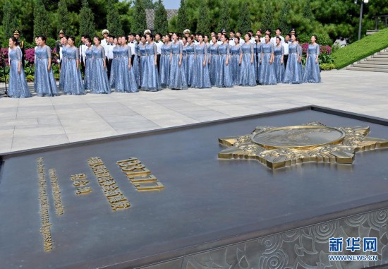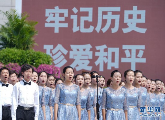 7月7日,首都大學生合唱團在儀式上演唱抗戰歌曲。 新華社記者 岳月偉 攝