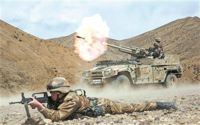 只見受考分隊官兵利用車輛快速機動的優勢,迅即占領炮陣地。駕駛員固定車位后,馬上展開陣地警戒。炮長和各炮手相互配合,搜索測距、裝訂諸元、快速開閂、裝填彈藥,整套射擊準備動作一氣呵成;鹋谂,硝煙彌漫,遠方目標被一一摧毀。