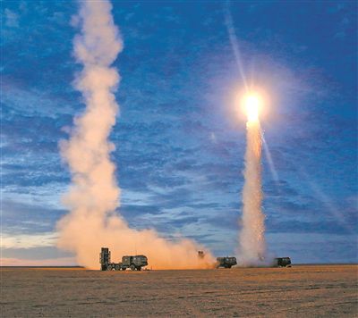 “發射!”隨著指揮員一聲令下,多枚導彈直刺蒼穹,撲向“敵”目標。